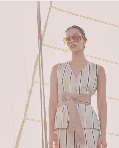 Once Was - Dynasty Linen Viscose Pant in Cayman Stripe