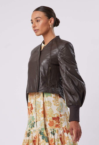 Once Was - EMPRESS CUPRO VISCOSE BOMBER JACKET IN DRAGON FLOWER
