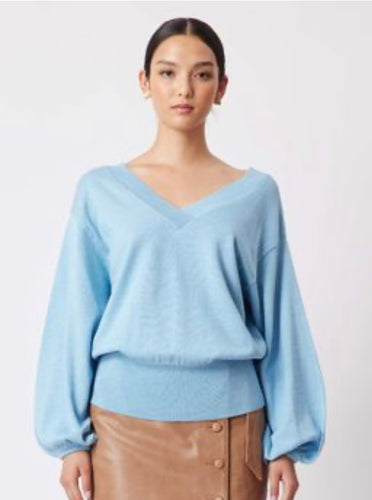 Once Was - Getty Supima cotton cashmere V-Neck (sky)