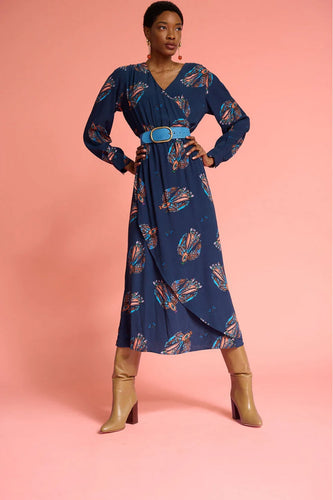 Peruzzi - Taffeta Trim Dress (Navy and Cognac)